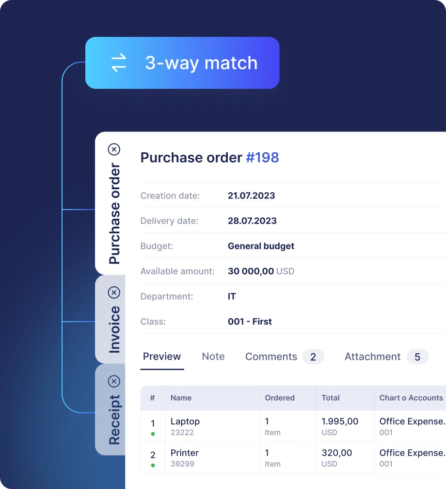 Automate routine tasks, reduce manual errors, and free up the finance team's time for strategic decision-making. Scale Precoro with your growing business needs.