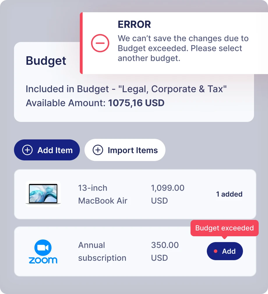 Boost the productivity of the finance team and drastically minimize errors with the help of Precoro’s spend control solution. Eliminate duplicate payments and minimize maverick spending with a streamlined financial process.