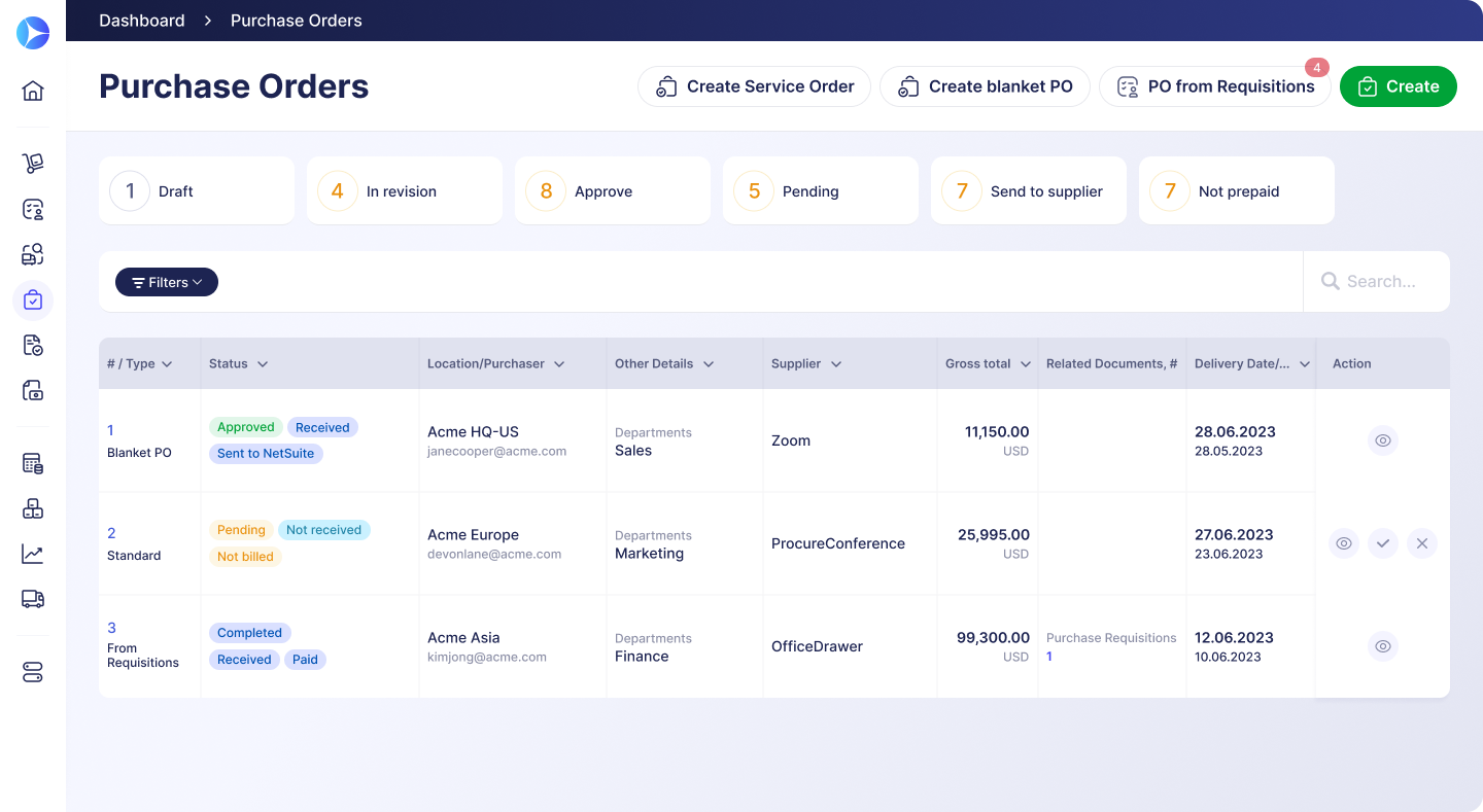 Never run out of supplies. Enjoy improved planning thanks to document centralization, swift approvals, and prompt supplier communication.